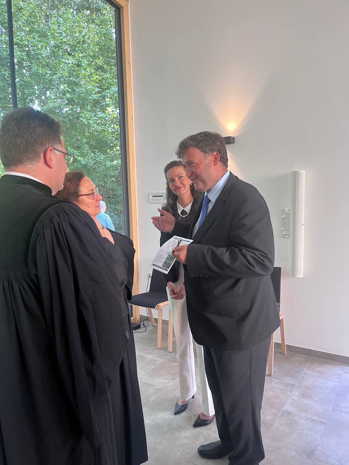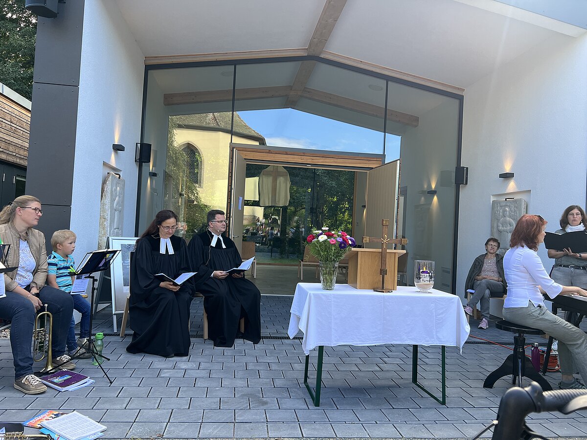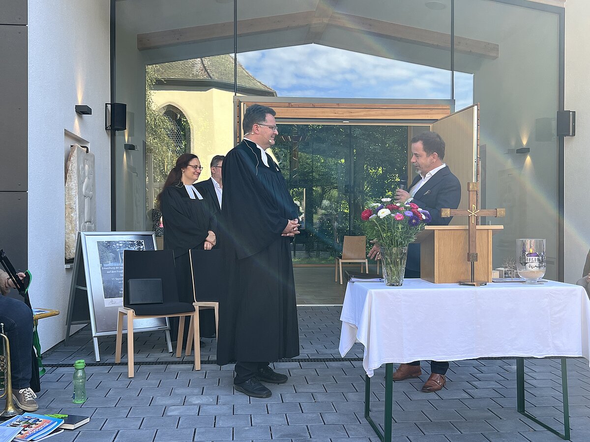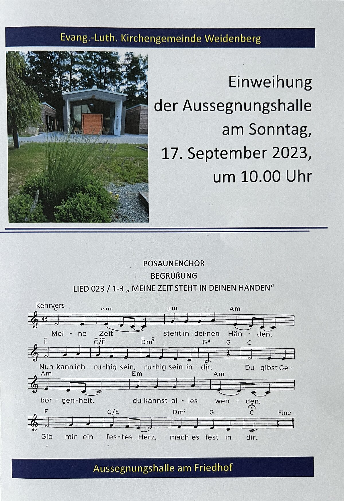 Heute fand im Freien ein bewegender Gottesdienst zur Einweihung der neuen Aussegnungshalle auf dem Friedhof in Weidenberg statt. Bei strahlendem Sonnenschein führten Pfarrerin Lauterbach und Pfarrer Daum, zwei engagierte Seelsorger, die Gemeinde in einer Zeremonie, die besinnlich und berührend war. Klänge von der Kantorei und dem Posaunenchor umrahmten die Veranstaltung und fügten dem Anlass eine erhebende Note hinzu. Ihre Melodien erfüllten die Luft und berührten die Herzen der Anwesenden, während sie sich vor der neuen Halle versammelten, die sowohl architektonisch als auch ästhetisch gelungen ist. Bürgermeister Wittauer und Architekt Krausch fanden Worte des Dankes und der Anerkennung. Sie betonten die Bedeutung dieses Ortes als einen Raum der Besinnung und des Abschieds. Nach dem offiziellen Teil hatten die Gäste die Gelegenheit, die frisch eingeweihte Halle zu besichtigen. Die Veranstaltung fand ihren Ausklang mit Gesprächen, Speise und Trank.