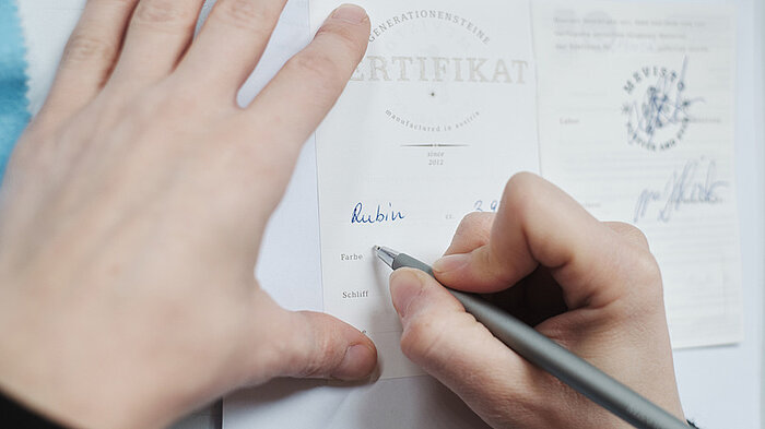 Mevisto ist das weltweit einzige Unternehmen, das Edelsteine wissenschaftlich nachweisbar personalisieren kann. Dieses spezielle Verfahren der Edelsteinherstellung wurde in jahrelanger Forschungsarbeit gemeinsam mit renommierten Universitäten entwickelt. Aus rund 50g Asche oder 10g Haar wird ein einzigartiger Rubin oder Saphir gezüchtet. Nach nur 30 Arbeitstagen, oder etwa 50 Arbeitstagen bei Schmuckstücken, verlässt der personalisierte Edelstein die Mevisto-Manufaktur. Jeder Schritt erfolgt mit höchster Präzision und die Abläufe sind ISO-9001 zertifiziert. Bestätigt ist sowohl das Vorhandensein der Elemente des Lebens im Edelstein als auch seine Einzigartigkeit.